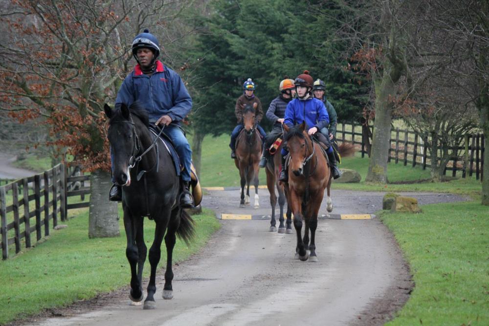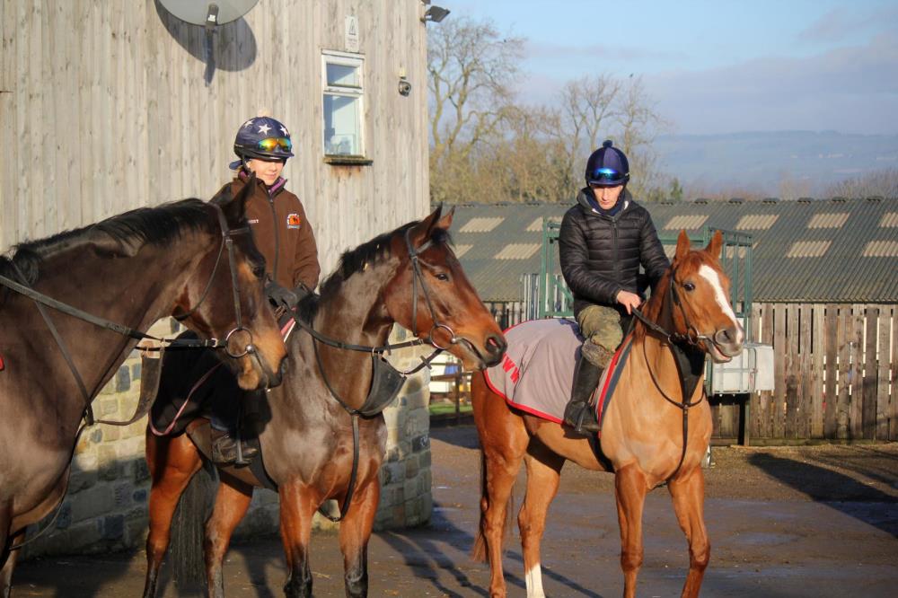 What a glorious day in the Yorkshire Dales! Bright sunshine assured everyone was in great spirits, especially a delighted Anna who was just about doing cartwheels around the office! Sun Hill really does look fantastic in the sunshine. The staff have the place looking spotless, Dale was even seen brushing the yard with a toothbrush, you'd be forgiven for thinking the Queen was coming to visit! Once up the all-weather was the order of the day, while some of the horses enjoyed a good shampoo before relaxing underneath the heat lamps.