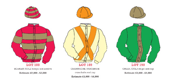 With the horse sales practically over for the year, the auction houses who sell bloodstock must be looking forward to a break once their final sales are over, the last remaining sales are mostly breeding stock and a few yearlings thrown in for good measure. However one interesting auction is due to take place soon where "cherished colours" will come under the hammer, see link below. The pink and beige look good to me although I don't mind the green ones either. Godolphin are probably guilty of starting the fashion off when they acquired their bright blue silks from trainer Alan Bailey who sold them to Sheikh Mohamad in a private deal many years ago.