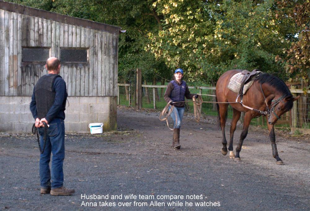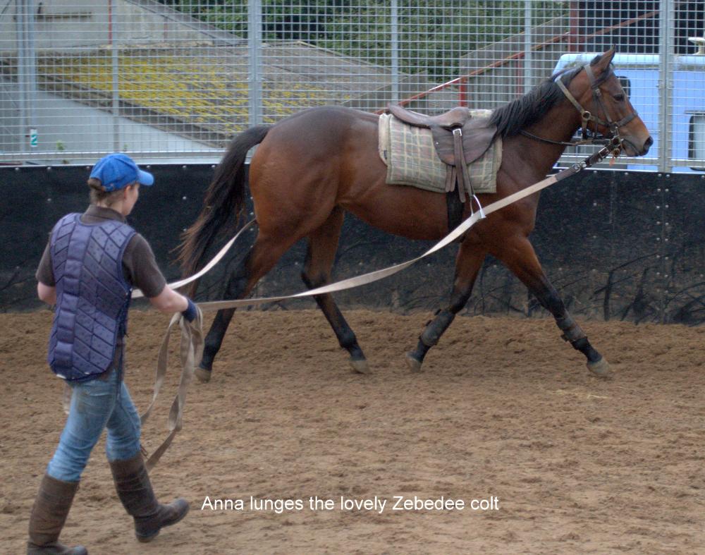 Breaking in yearlings might not have been on Anna's job description when she arrived here several years ago to take over the day to day running of the office - and all things financial (which she is brilliant at). But, having spent all her life breaking horses in all over the world, including Japan, she probably thought a nice office job would suit her better. Until now that is - thanks to hubby Allen who recently suffered a shoulder injury from one of the yearlings.