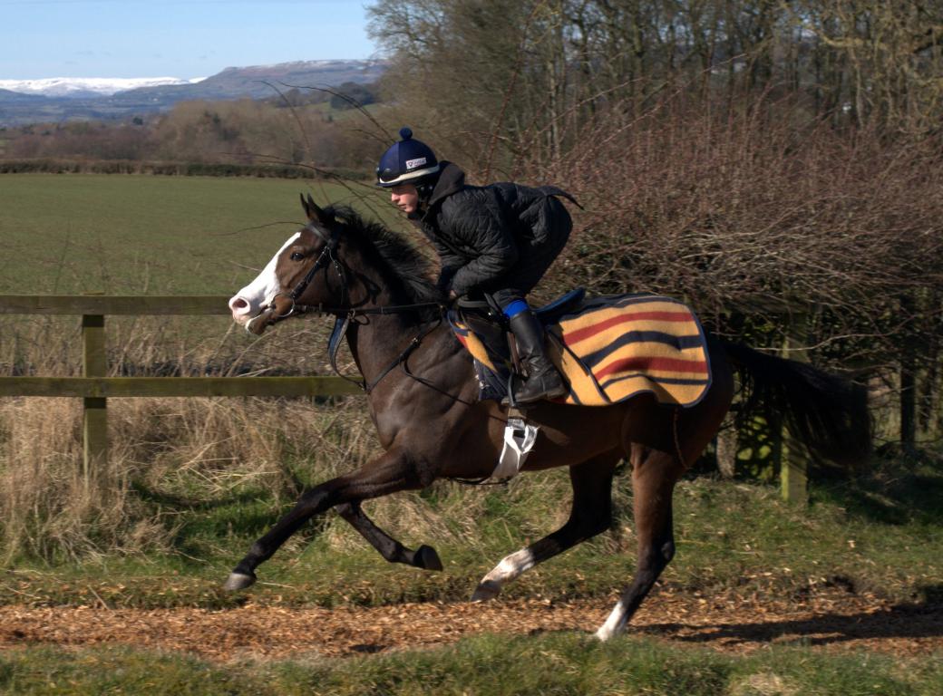 Glorious sunshine and high spirits this morning - it was one of those days that really makes you appreciate living and working in such a beautiful setting. Lots of riders in today so 5 lots straight up the hill gallop followed by a 6th lot on the round canter, with Allen, Janos and Colm away to the farm to ride a few there.