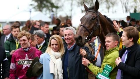 Two weeks ago he trained the winner of the Irish National with Roque Angel, also owned by the O'Leary family and running in the famous Gigginstown silks. But could he do it again in the Grand National? When asked by a journalist on Friday if he might do the Irish-English National double, he looked to the skies and said: "He's answered the question once, he might not answer a second time."