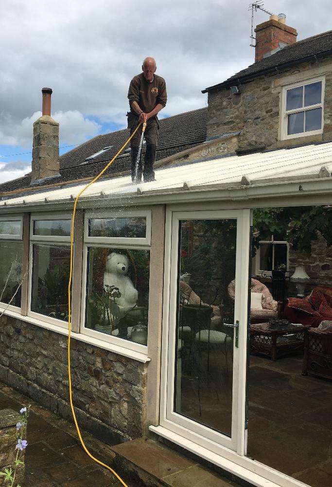 At home today George and I have enjoyed a bit of peace and quiet, except it's impossible to keep a good man down and George certainly didn't have his feet on the ground, instead he spent half the afternoon on the conservatory roof with a brush and hosepipe, refusing to listen to my plea's to "at least to wear a helmet and body protector" while on the yard, the promising two year old by Gio Ponte out of a mare who has produced six winners from six runners, and who we like very much, is not showing any signs of his recent brush with a small knife. He is as tough as teak too-and reminds us of "Willie the Whipper" (hope he is a good) maybe he should be called "Mick the Man" after Mick Channon?