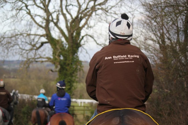 Rowan stretches after cantering a fresh Rosina.