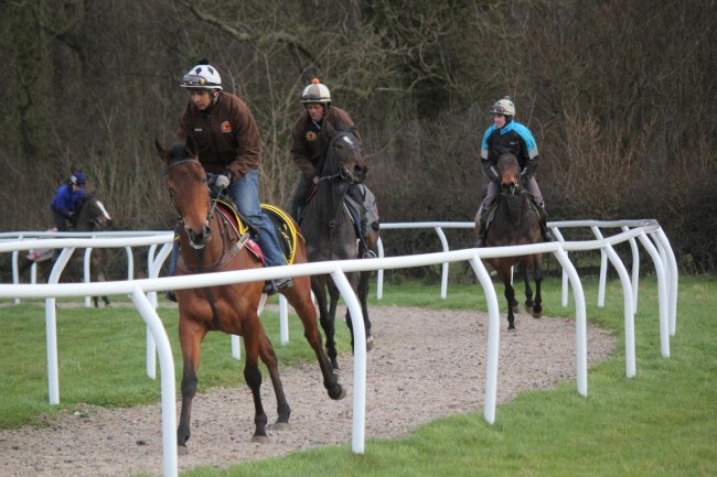 Another busy morning with lots pulling out between 6.45 and 1pm again, Colm managed to ride six lots before leaving for Sedgefield where he has two rides. This morning saw both the fibre sand and the main woodchip gallop in full use, the walkers haven't stopped and the treadmill is ready to use again after the recent work to the barn and we have missed using it for four days. George who has been busy riding out and tidying up the treadmill area managed to be standing underneath a ten pounds sledgehammer when it fell on his toes, the same toes the smart colt by Intense Focus managed to jump all over ths morning after excersise, he is not a happy bunny.