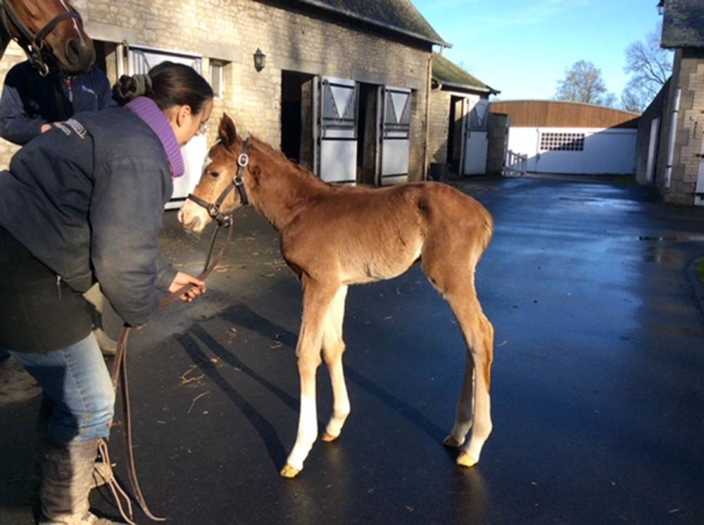 Last month we brought you news of Cuppatee's baby, this time, it's Ninetta. 'Netty' was a winner over 7 furlongs and an excellent third in the £300,000 Tattersalls Millions 2yo Fillies Trophy at Newmarket. Owner Jen Bianco is highly interested in breeding and sent Ninetta to stud after she was retired from racing, to be served by high-class sprinter Bated Breath. Last night, in France, she gave birth to a chestnut colt. Both are doing well and the mare is said to be 'very sweet with the foal'. Great news to brighten up and very wet and dreary morning!