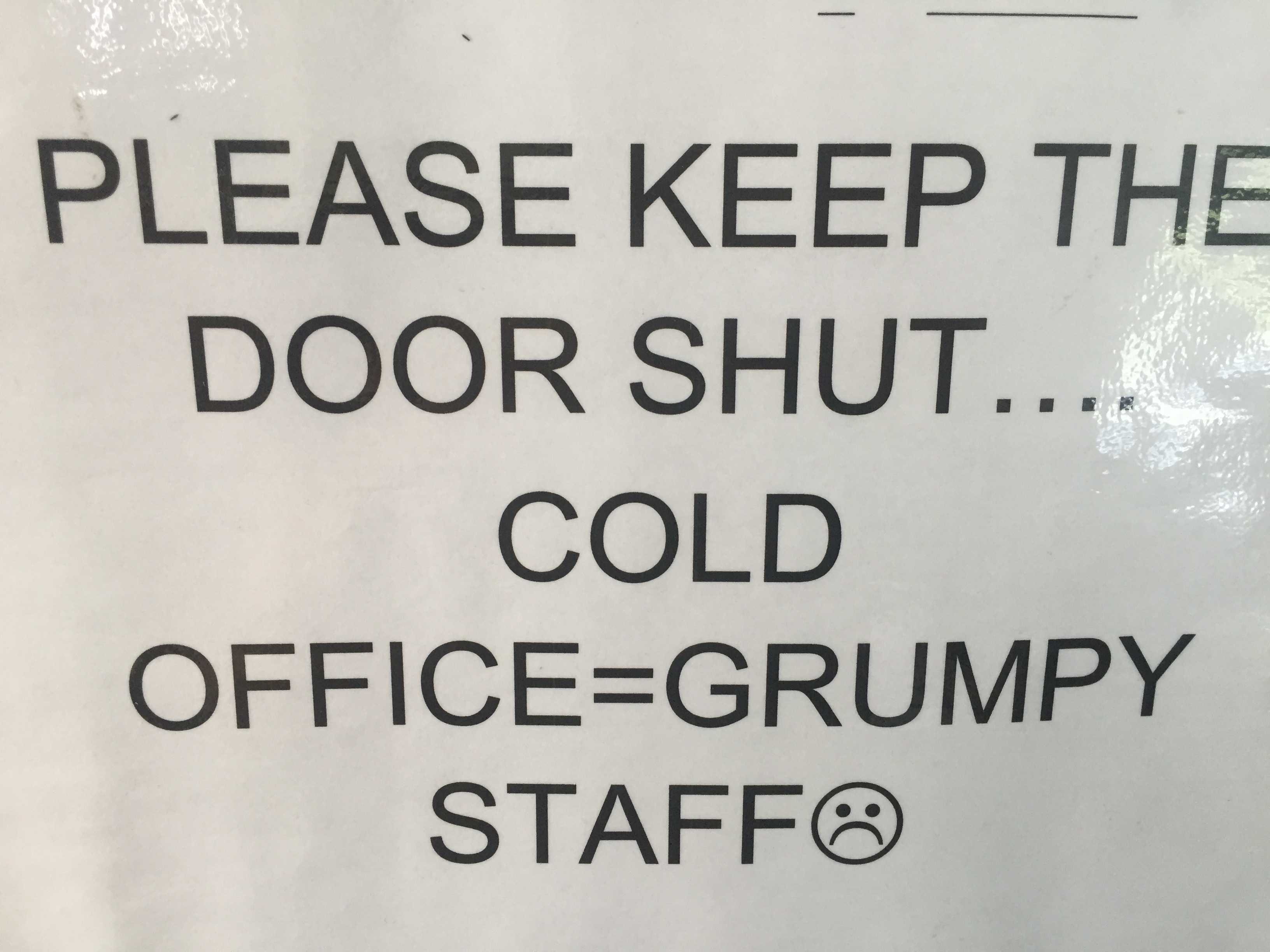 Anna's door sign - she's still wearing two sweatshirts and a gilet