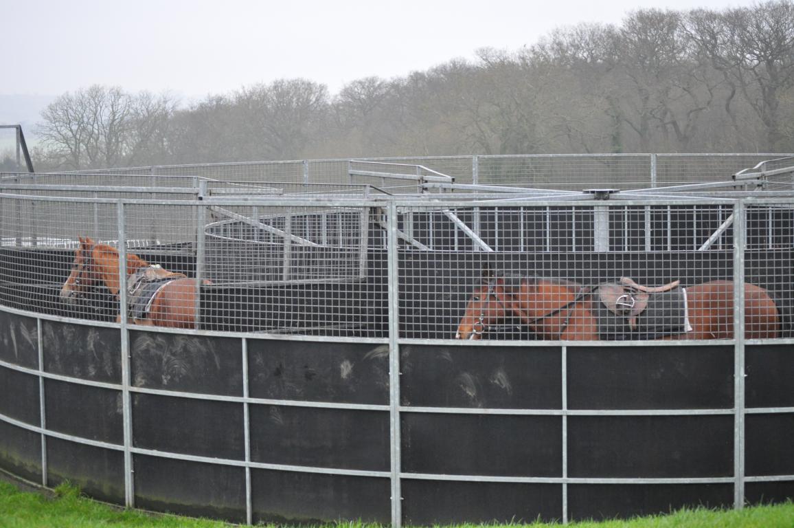 This week has seen one of our three horses walkers in dire need of repair when one of the “pushers” (the section which separates the horses into their own compartment) had its steel, tubular and incredibly strong arm bent so badly it had to be removed using a telehandler, taken to a workshop locally and repaired. The rear doors in one section of the starting stalls too had to undergo some metal therapy because the weight of horses sitting back on the rear gates over a period of years had weakened the doors and frames.