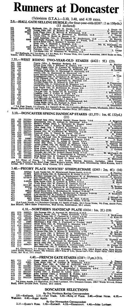 The opening meeting on the turf is round the corner and, as a timely reminder of days gone by “Anaglogs Daughter” the incredible never ending source of fascinating historical facts and photos depicting famous and much loved equine and human racing characters posted the race card below on Twitter. It is so old “G Duffield” was a 5 lb claimer! In addition he was riding at 7 stone 3 lbs before his claim making his riding weigh that day 6 stone 12lbs and that was not the lightest he used to do either!