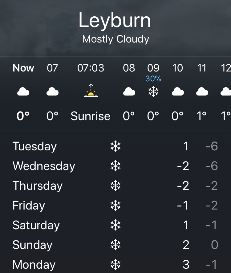 I think for the rest of the week I will forgo my usual morning routine of waking up, reaching for my phone and checking the weather app. Something about today’s report has put me off…