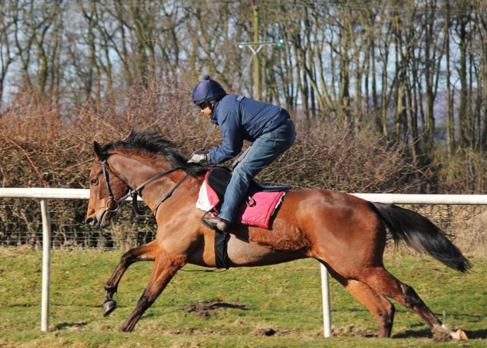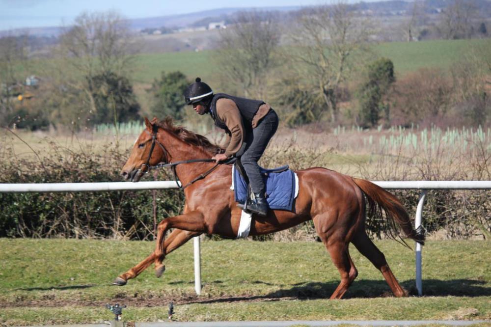 Perfect photo taking weather today, some of which can be seen below. Owners, Joe Richardon and Steve Bradley were in to see their fillies and Joe came with an arm full of creme eggs - much to our delight. The fillies are flourishing in the sun shine, they especially seem to appreciate the brighter, warmer weather - the staff feel the same, male and female! The season has officially started so it won't be too long before we are making entries for the turf and so it's about the time that we begin to up the horses work, a few more sharper pieces and a bit of upsides work for the youngsters. It's now that you start to get a bit more an idea of just what you have to go to war with.