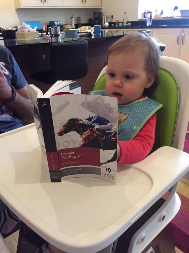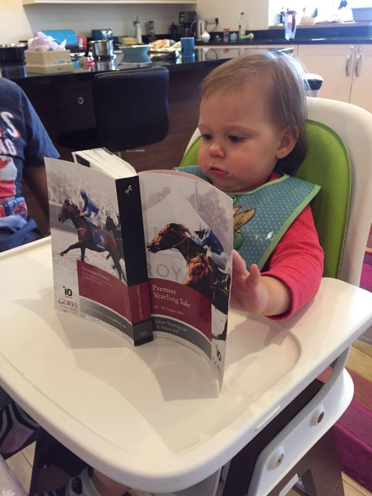 When it comes to buying and selling racehorses I am in my element, but I was never as far advanced as one little girl I know who is already studying pedigrees with a great deal of concentration. I think she could be one of racing's major players in years to come and I know her piggy bank is already under siege. You can see the expression on her face as she turns the pages of the Premier yearling catalogue, the look ranges from “this one looks good” to “this one looks REALLY good” and “Oh God, this one WILL be very expensive……….mummy………………………how much money is in the piggy bank?”