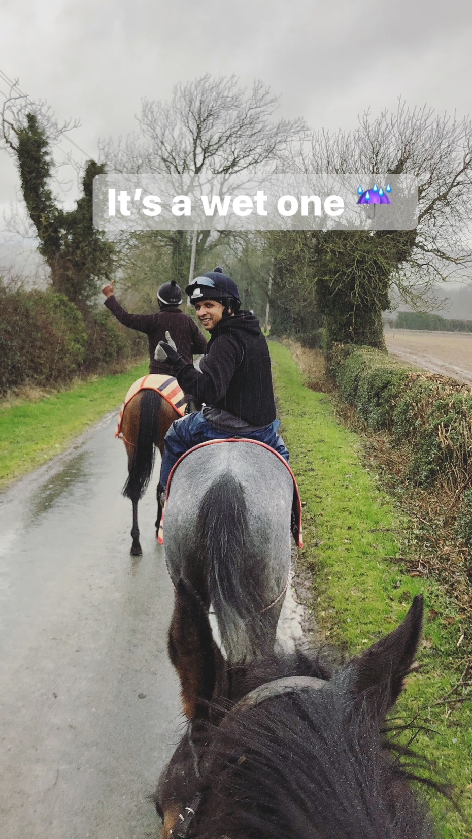 A return to my roots today with two lots on the worklist that had my name written next to them - Mimic's Memory and Highly Focussed. Helmet dusted off and riding boots on, I was glad to remember how to tack one up! I jest, I'm not that rusty and to a degree, it is like riding a bike - you don't forget, though I am sure to be a little stiff in the morning. It was great to have a laugh with the lads (at my expense of course) and although it rained, it didn't dampen our spirits. Being a small yard, it helps to have as many strings to your bow as possible, so that we can all muck in should someone call in sick or be away on holiday and the varying workload keeps things interesting. However, James needn't worry that he will lose all the rides that require his specialist touch as the 'horse whisperer', Allen is not at risk of being parted from his beloved naughty boy 'Gorse' and lightweight Dale is not about to be stood down from breezing runners the day before racing!